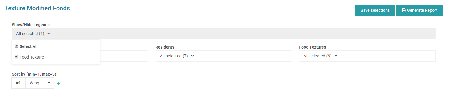 The Texture Modified Foods report is a summary of all Resident Food Textures, as entered in their Resident Profile Dietary Information.