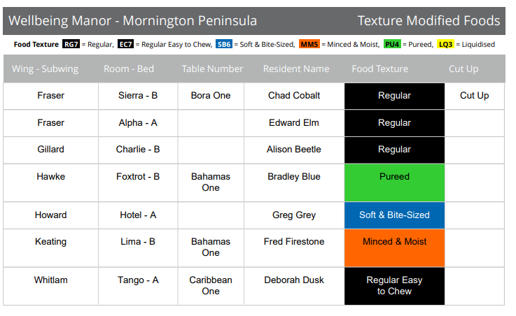 Our Catering Module follows the IDDSI Framework to classify, colour-code and describe food textures.