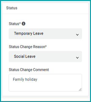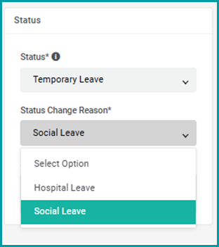 Click into the Status* drop-down menu and choose Temporary Leave.