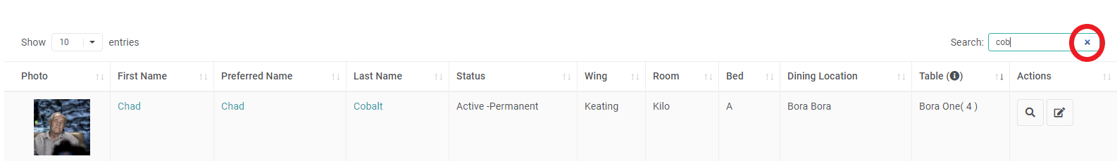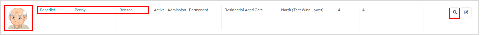 To View a Resident in more detail, simply click on their Photo, Name, or the View icon in their Actions column.