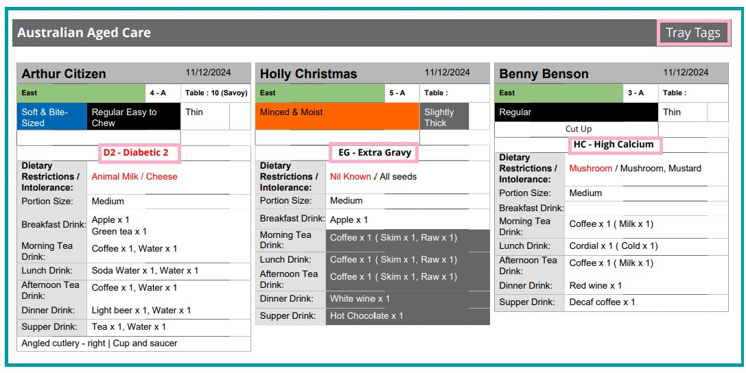 We have enhanced our tray tag reports to include the full description of any Special Diets that apply to a resident. The Special Diet will no longer appear just as a code (E.G. D2 will display as D2 - Diabetic 2)